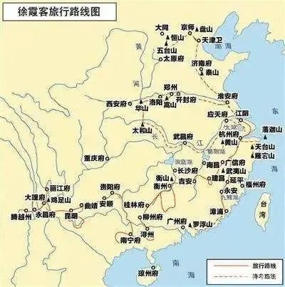 1607年農(nóng)歷三月初三(3.29),他從家鄉(xiāng)的勝水橋頭第一次出游,暢游無錫惠山,泛舟太湖。之后的34年間,他走遍了當(dāng)時中國除四川之外的兩京十二省,在我國第一批44個重點風(fēng)景名勝區(qū)中,有25處留有他的足跡。他先后登過140多座山,考察過376個巖洞,可謂“亙古以來,一人而已”,被稱為“千古奇人”。